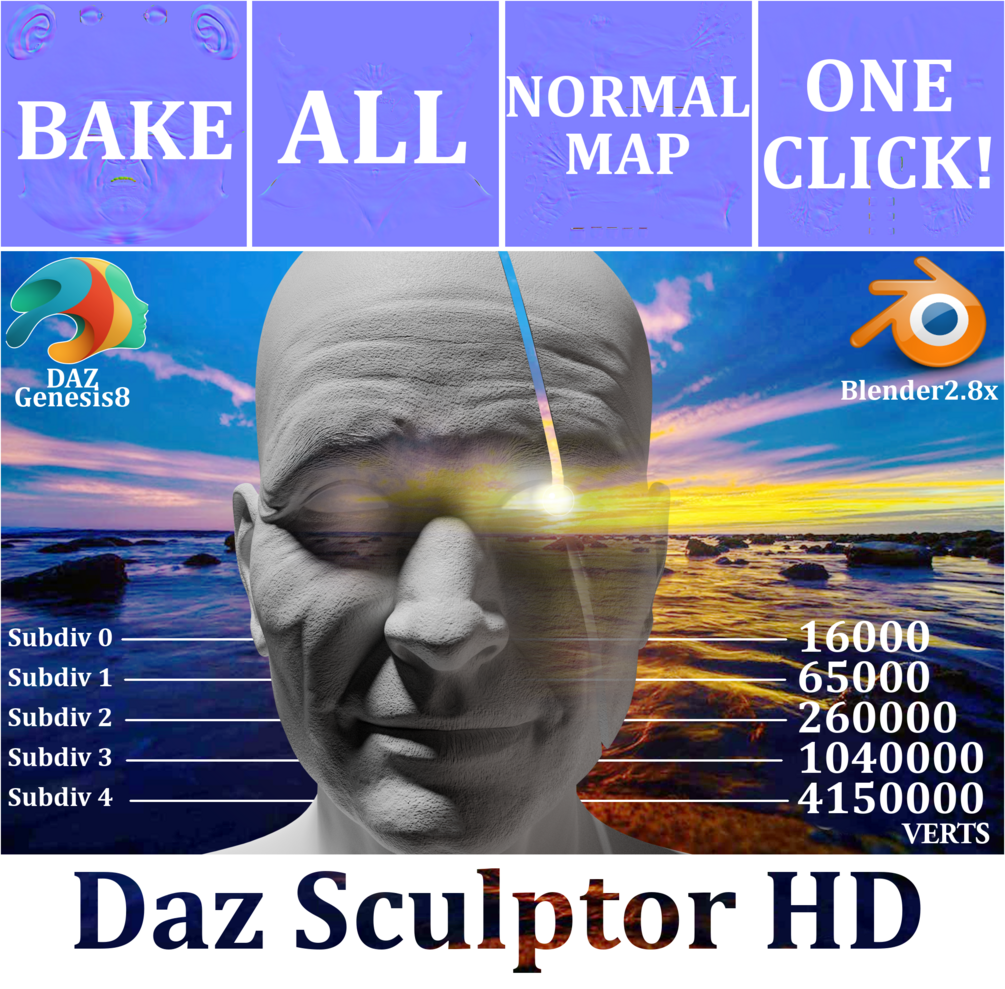 DazSculptorHD is an add-on that runs on Blender 2.8x to customize the shape of DazStudio Genesis8 figures freely. In the same series, we also released a free add-on called DazSculptorFree, but this was limited to a morph creation subdivision level of 0 (about 16,000 vertices).